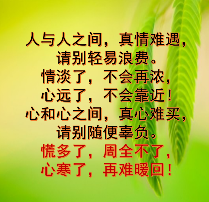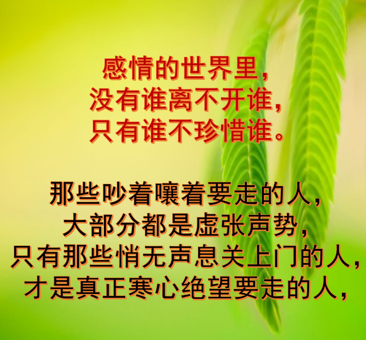 更新了一条心情: 《缘》一旦失去,找不回来,《心》一旦寒了,再难暖回,《人》一旦离开,再也不见!好好珍惜! 全文