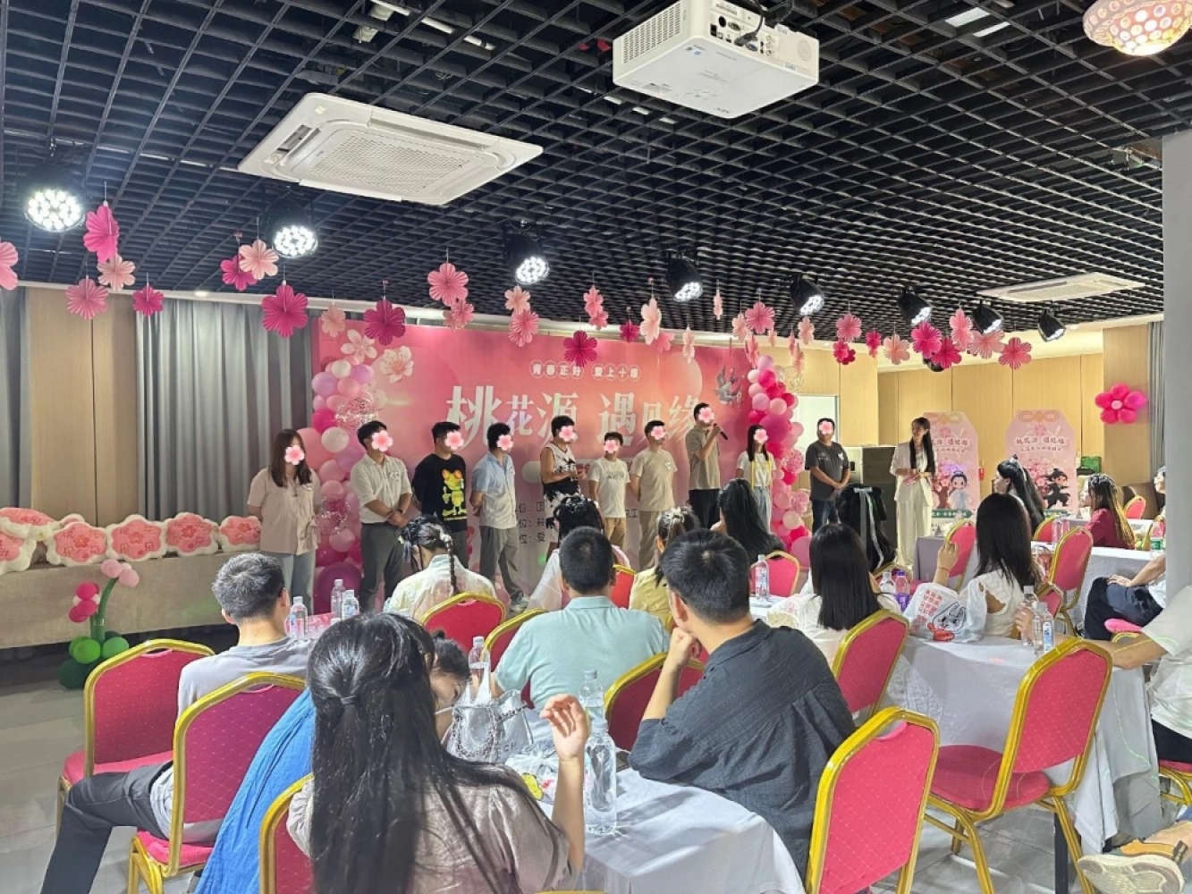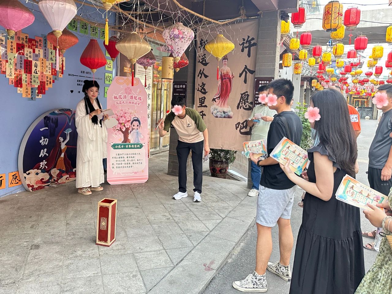 活动以“古风邂逅+青春社交”为核心,以“桃花源”IP为载体,特别策划缘分墙寻缘、线下相亲会、沉浸式江湖游园会、桃花仙子古风说媒会四大环节,来自全市机关企事业单位、新兴领域等120余名青年才俊齐聚一堂,共赴这场初夏的心动之约。
